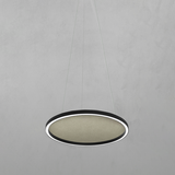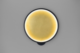 Son disque stratifié distinctif diffuse subtilement la lumière, créant une lueur douce et une sensation de profondeur sur le mur.