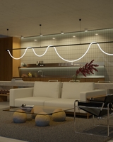 Spritzer est une lampe aux formes dynamiques et fluides. Enfermée dans un tube flexible, la lumière se diffuse doucement le long de lignes définies. Ce luminaire élégant fonctionne parfaitement dans un groupe de luminaires du même type, créant des constellations lumineuses uniques.
