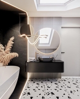 L’élément central contrastant, soigneusement positionné, confère au luminaire un caractère audacieux et contemporain et souligne sa composition géométrique.